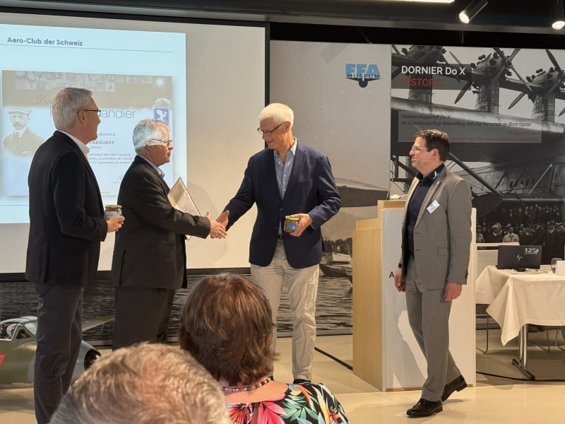 Unser lanjähriger Generalsekretär des Aero - Club Yves Burkhard wurde für seine vielen Aktivitäten zu Gunsten der Aviatik mit dem Paul Tissandier Diplom ausgezeichnet für dessen Übergabe extra zwei Ranghohe Vorstandsmitglieder der FAI (Fédération Aéronautique International)  angereist waren.
