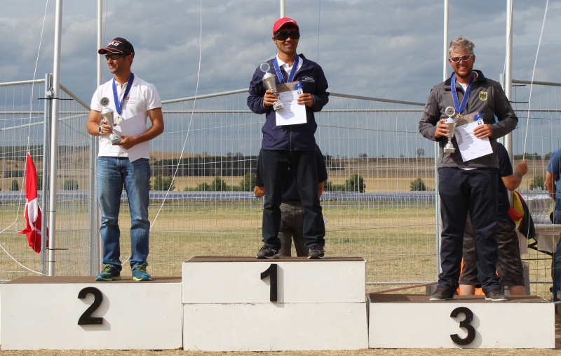 *** 2. Update vom 9. August Und hier noch die Rangliste vom heutigen Tag. Hiroki nimmt Ennio im ersten Finaldurchgang deutliche 8 Punkte ab. Im zweiten sind sie gleichauf, aber der Schweizer hat die Nase um einen Viertelpunkt vorne und bleibt in Führung. Morgen wird vermutlich Weltmeister, wer den Tausender holt. Die F3N-erfahrenen Piloten (Eric, Nick) machen deutlich Boden gut, Marc und Martin verlieren etwas. In der Teamwertung hat Japan nun klar Anspruch auf Gold angemeldet, vor Deutschland und der Schweiz momentan auf Bronzekurs. Aber Achtung, für morgen sind 25 - 50 km/h Wind gemeldet in Ballenstedt, das gibt einen Windpoker, wehe wer ein Starkwind-Fenster erwischt...